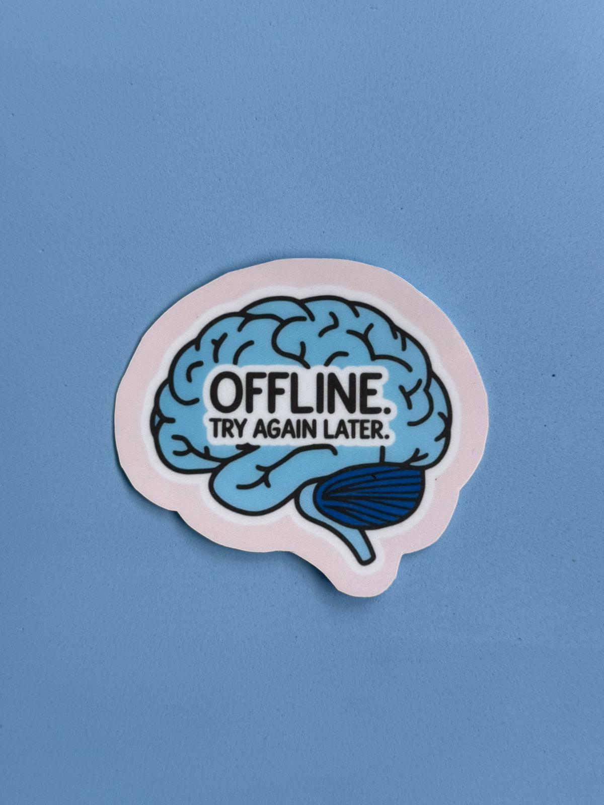 Laminowana, wodoodporna naklejka „Offline. Try again later.” Gotowa do użycia, trwała, 7×6 cm – idealna na laptopa, kubek lub planer.