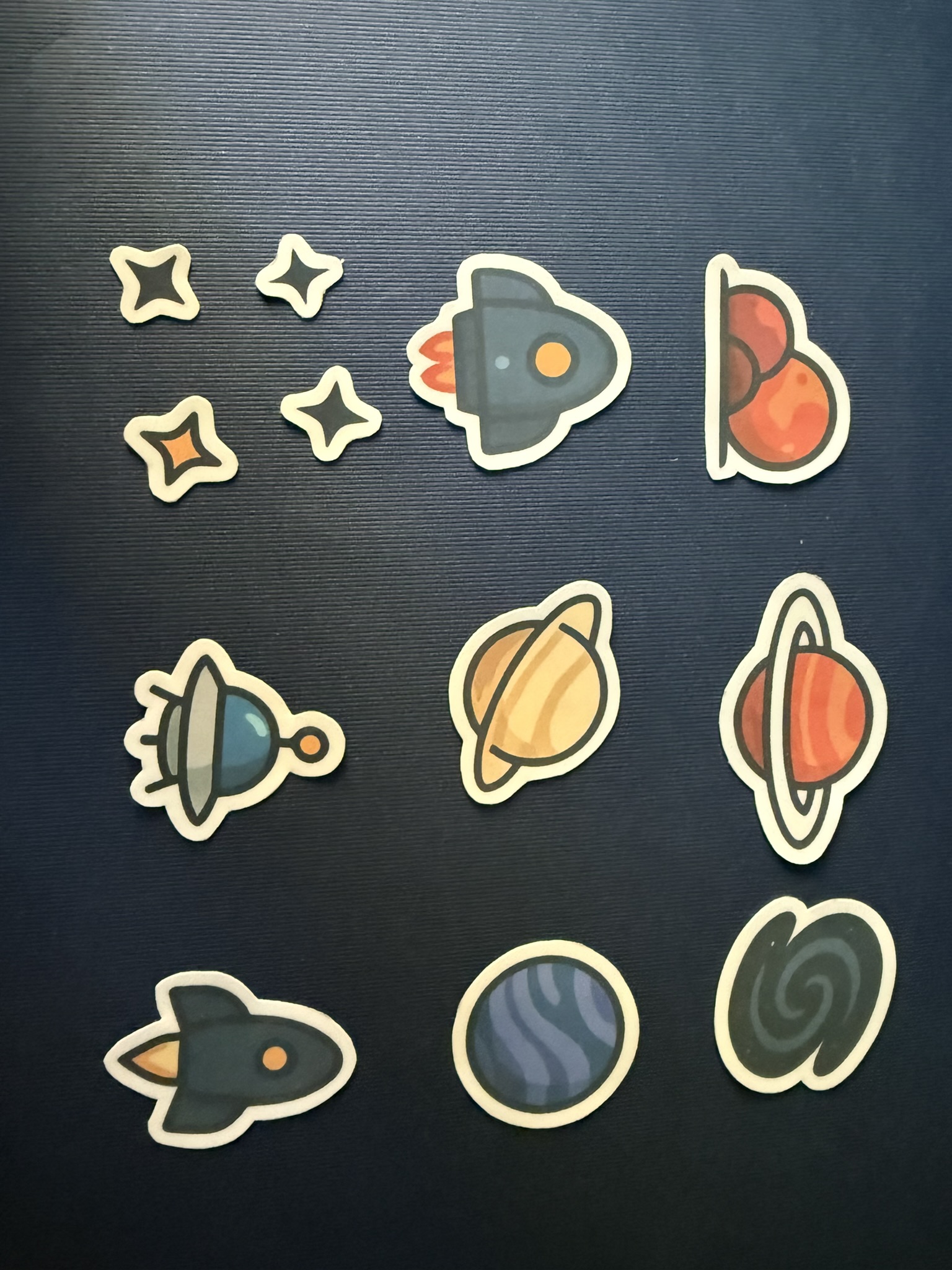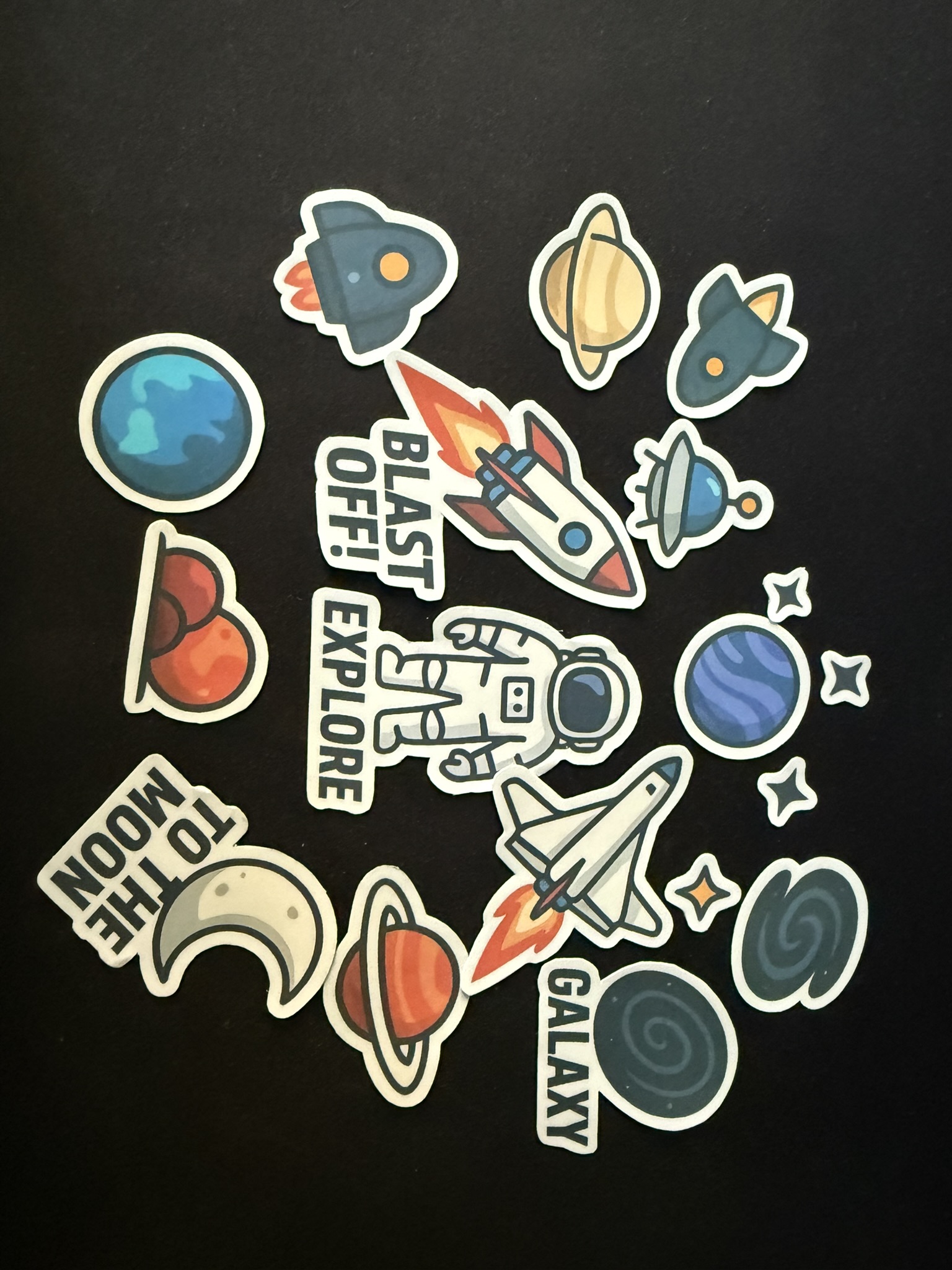 🚀 Zestaw gotowych naklejek z motywem kosmosu – dokładnie jak na zdjęciu!