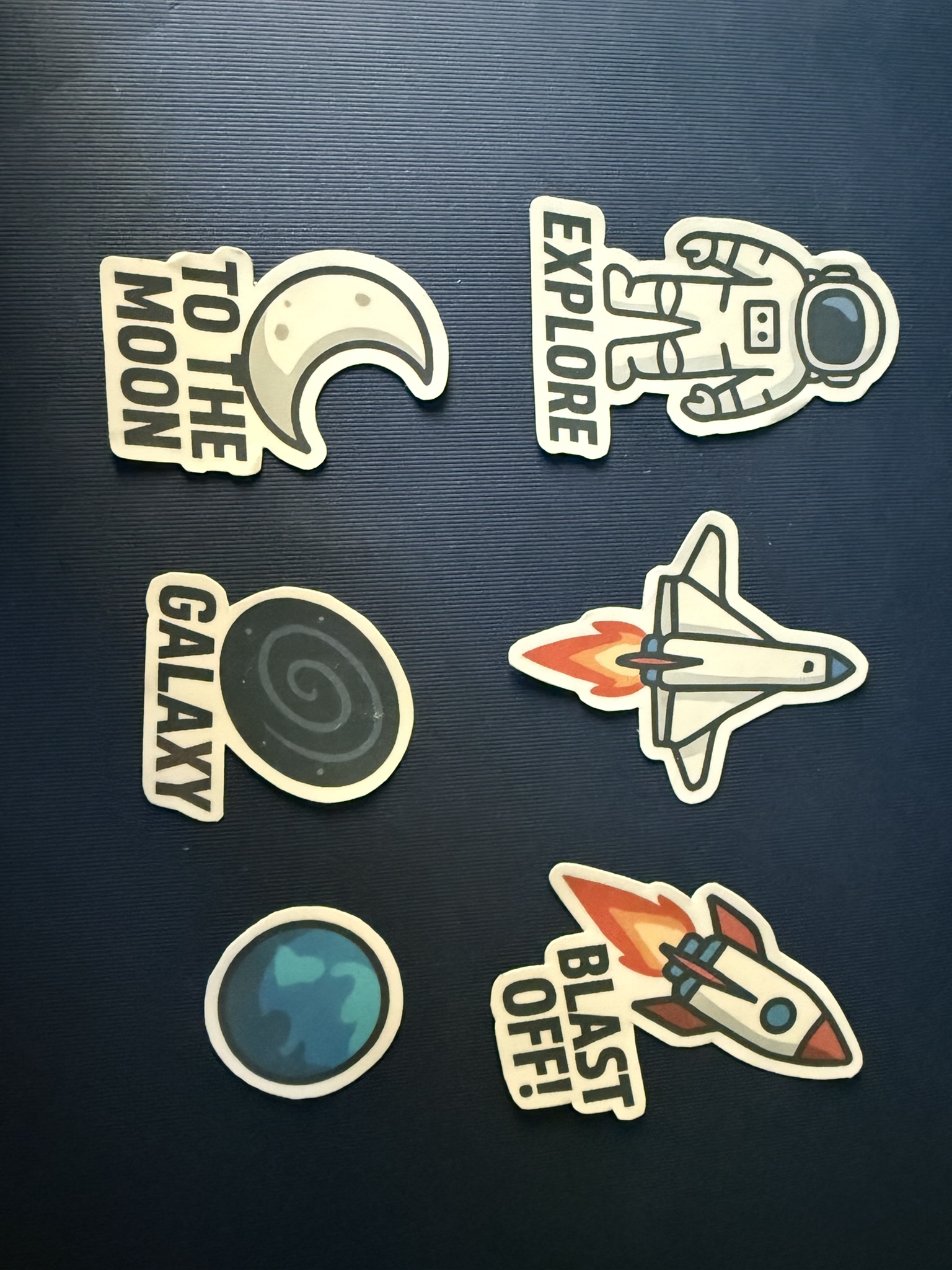 Naklejki wodoodporne, wycięte – rakiety, astronauta, planety